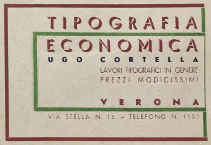 Sono ancora oggi gelosamente custoditi i campionari meravigliosi dei lavori svolti in quegli anni venti, con i campioni dei biglietti da visita, le partecipazioni o la carta intestata delle ditte di un tempo, quelle ditte che costituirono la base della ricchezza della nostra città e che sono preziosi archivi della storia di tutti i veronesi.